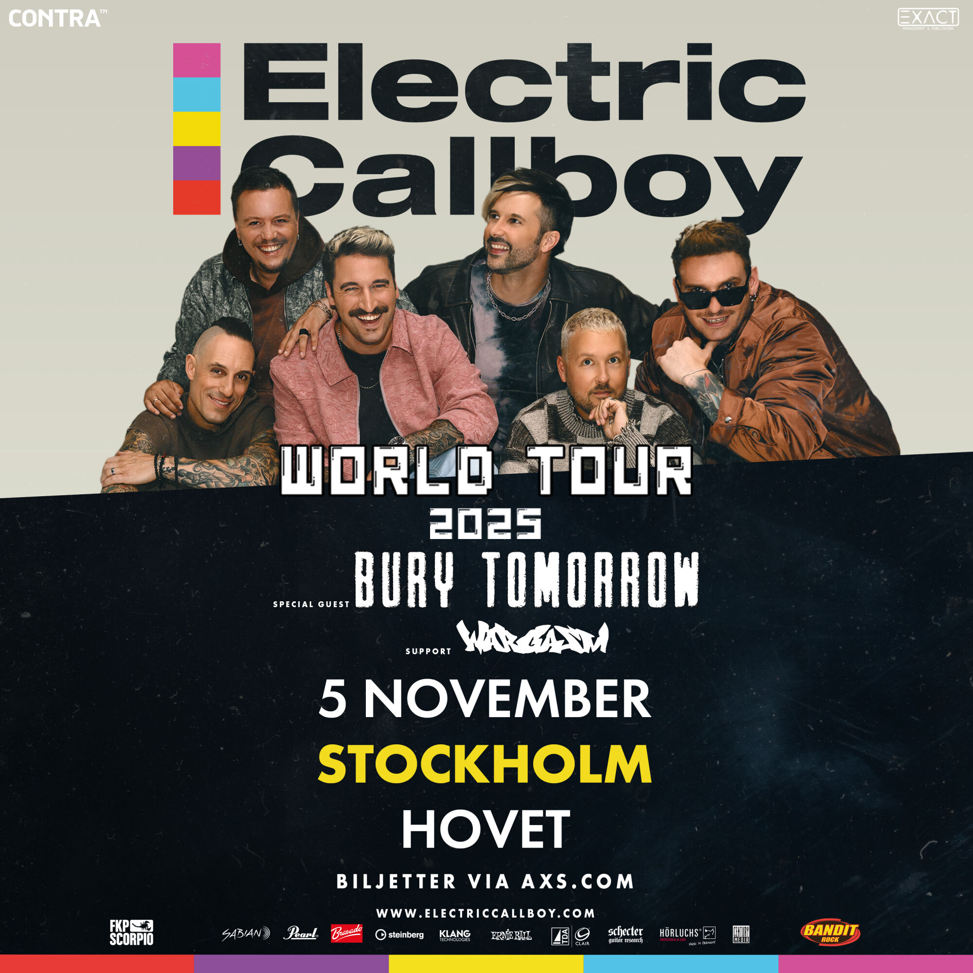 Sommaren 2024 intog Electric Callboy storfestivaler som Download, Rock am Ring och Sweden Rock Festival. Nu siktar de ännu högre. Deras kommande turné är den största och mest ambitiösa hittills. Den här gången är det arenor som gäller. Och vi är först ut, då turnén inleds i Skandinavien november 2025. Det blir en hyperintensiv upplevelse, där beats och breakdowns träffar lika hårt som bandets obevekliga scennärvaro.